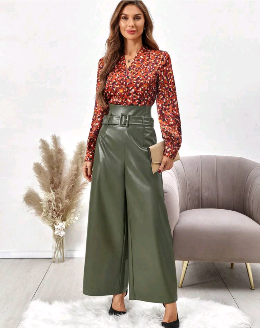 Calças De Perna Larga De Couro Pu Com Cintura Ultra Alta E Cinto. Descrição Cor: Verde, Preto, Castanho Estilo: elegante Estampa: Simples Tipo: Perna Larga Tipo de Fechamento: Mosca com zíper Linha da cintura: cintura ultra alta Comprimento: Longo Caimento da peça: Solto Tecido: Elasticidade Baixa Revestimento: 100% Poliuretano Material: Couro PU Composição: 100% Poliéster Instruções de manutenção: Lavar à máquina, não lavar a seco Temperatura: Primavera/Outono (18-25 ℃/63-77 ℉) Possui forro: Sem forro Translúcido: Não.